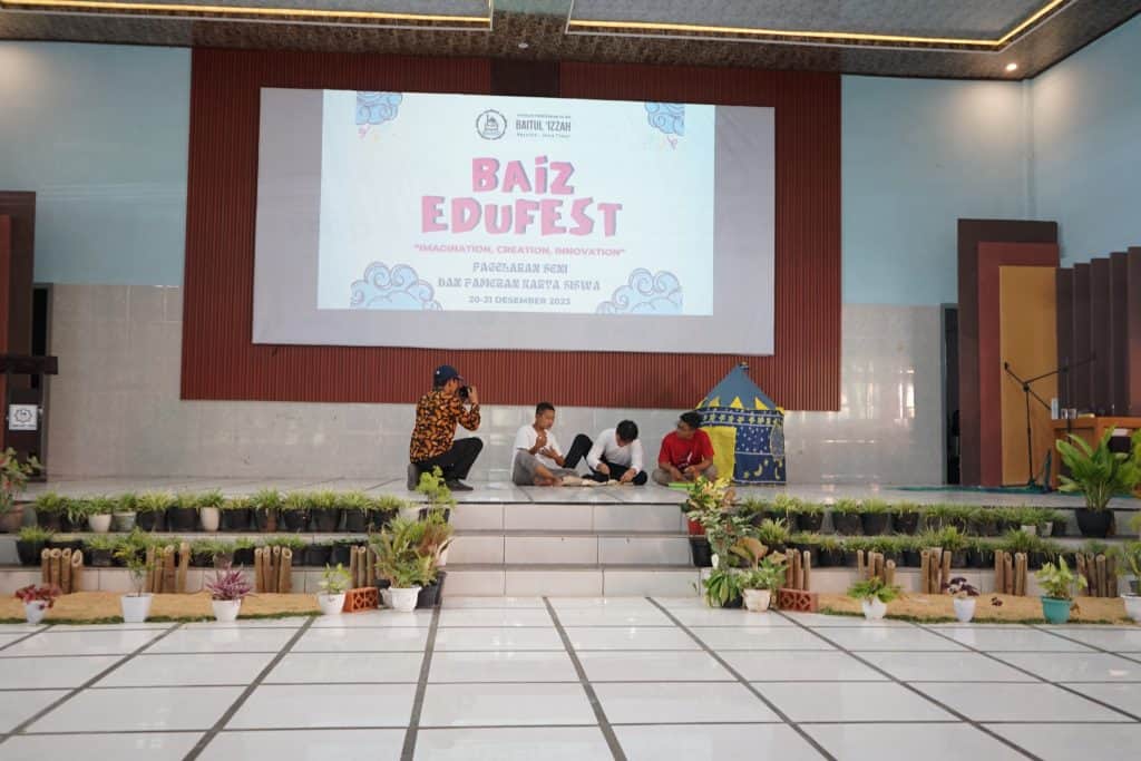 Nganjuk – Dalam upaya mengimplementasikan kurikulum Merdeka bagi jenjang pendidikan sekolah di lingkungan Yayasan Pendidikan Islam Baitul Izzah menggelar kegiatan education festival yakni Baiz Edu Fest yang mengusung tema imagination, creation, innovation. Baiz edufest merupakan salah satu ajang pagelaran seni dan pameran karya siswa yang diikuti oleh seluruh peserta didik Baitul ‘Izzah di semua jenjang, acara Baiz Edufest kali pertama yang dilaksanakan. Kegiatan ini digelar selama dua hari, sejak Rabu (20/11/2023) hingga Kamis (21/11/2023) yang dilaksanakan di Aula Baitul Izzah dan turut dihadiri oleh wali murid.